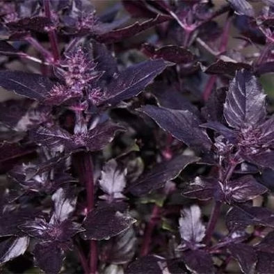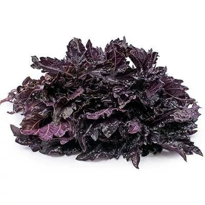 ریحان بنفش خرچنگ این گونه از ریحان برگ بنفش با رگه های عمیق و حاشیه برگ های دندانه دار تزئینی مشخص می شود. رگ های بنفش ریحان درخششی زیبا و مسی و طعم میخک مانند و کمی تند دارند. از آنها در سالاد، برای پستو یا نگهداری شده در روغن و سرکه استفاده کنید.